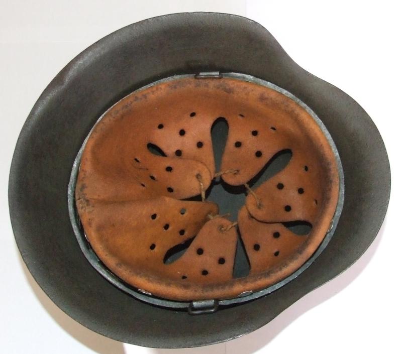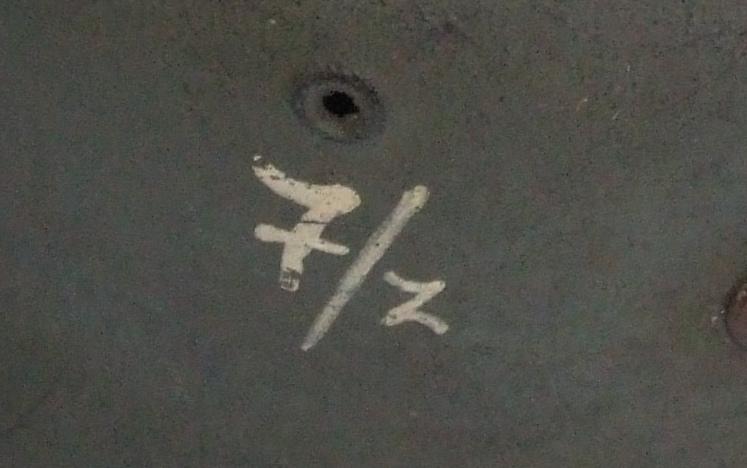 A small size M42 helmet with a painted Hitler Youth decal. Field green painted shell inside and out. HJ logo painted below vent. On the other side of the shell are the numerals 7/2 - also painted - presumably referencing the HJ Standarte. Inner skirt stamped with maker and size mark ckl62. Batch code stamping is too faint to read but appears to be 2456. Hide liner intact. No chinstrap. No official HJ decal was ever produced, so painted-on decals are not uncommon.
