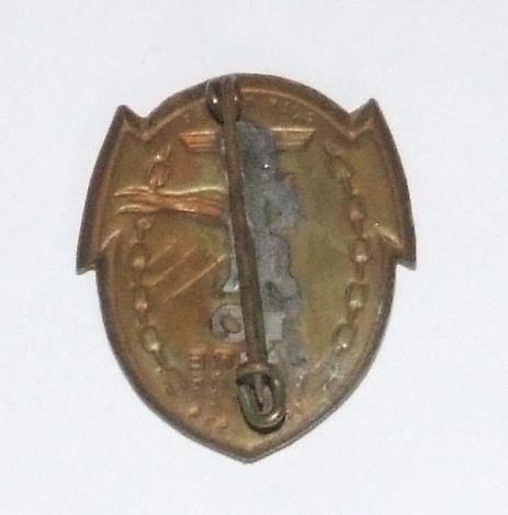 A pressed metal tinny to mark the 10th anniversary of the relief of the Pfalz-Rhineland Palatinate and its incorporation into the Third Reich, 1924-34. Eagle and swastika. With clip.