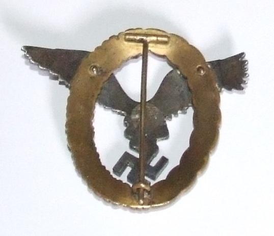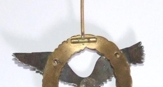 A nice example of a Luftwaffe Pilot's Badge. Most silvering remaining on nuesilver eagle, set on gilt buntmetal laurels. Needle pin. No makers marks but hinge construction suggest Berg und Nolte.