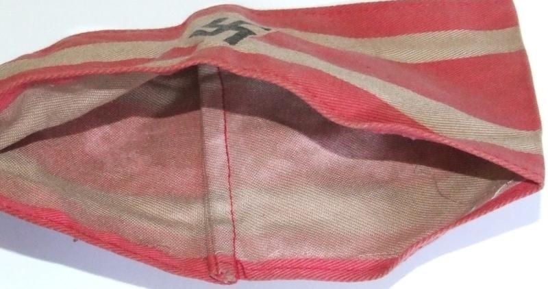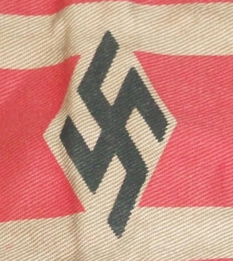 A screen-printed armband for the Hitler Youth. Red and white, made from heavy cloth. Hitler Youth diamond.