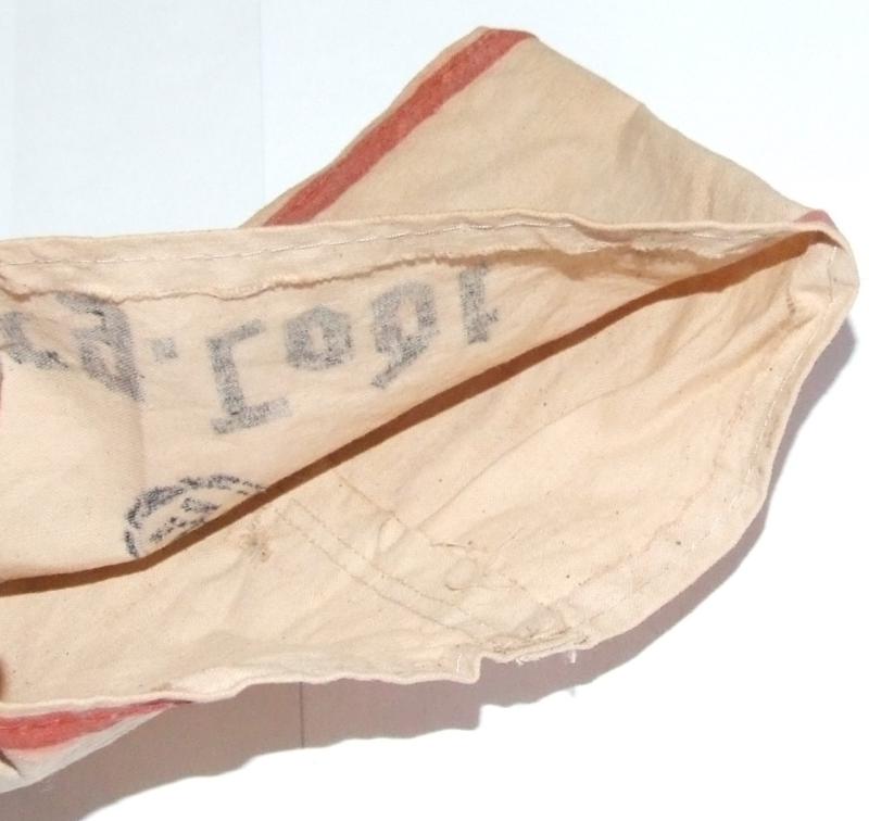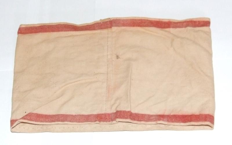 A white canvas armband for a guard - probably of a forced labour work detail - in the Organisation Todt. Eagle and swastika and Org. Todt legend printed on the armband, with a red stripe top and bottom.