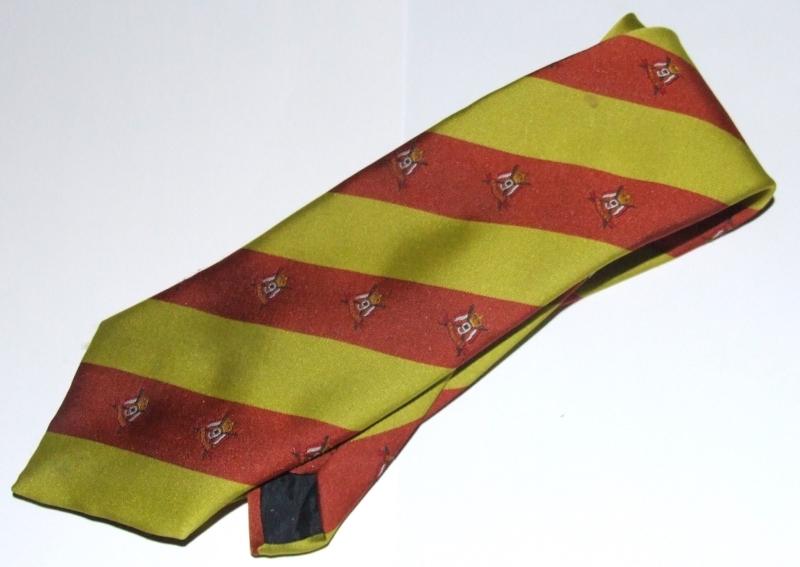 A regimental tie for the 9th Queens Royal Lancers. Gold and Kenya Red stripes with 9th Lancers crest. Good condition