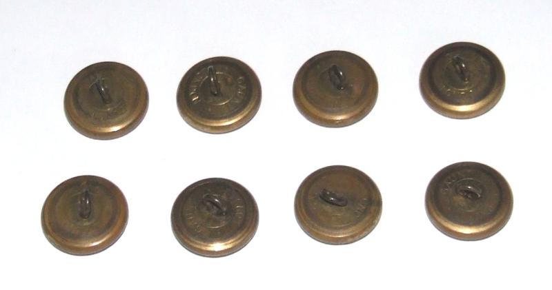 A set of eight Royal Navy brass 22mm tunic buttons. Kings Crown. Maker marked by Gaunt of London.